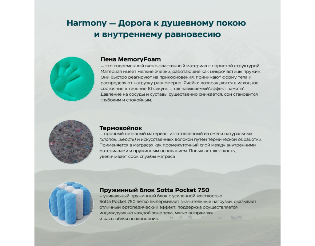 Пусть дни станут яркими, а вечера – исполненными тишиной и внутренним светом. Погрузитесь в состояние глубочайшего покоя с матрасом Гармония, вдохновленным священными горами Тибета и мудростью восточной философии.