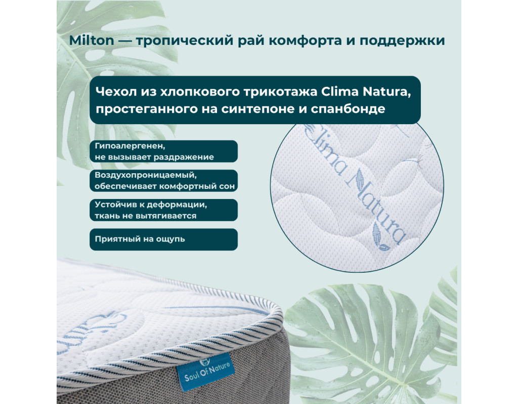 Поселите кусочек солнца и сочности тропиков у себя дома с матрасом Милтон – идеальным решением для баланса комфорта и заботы о здоровье.