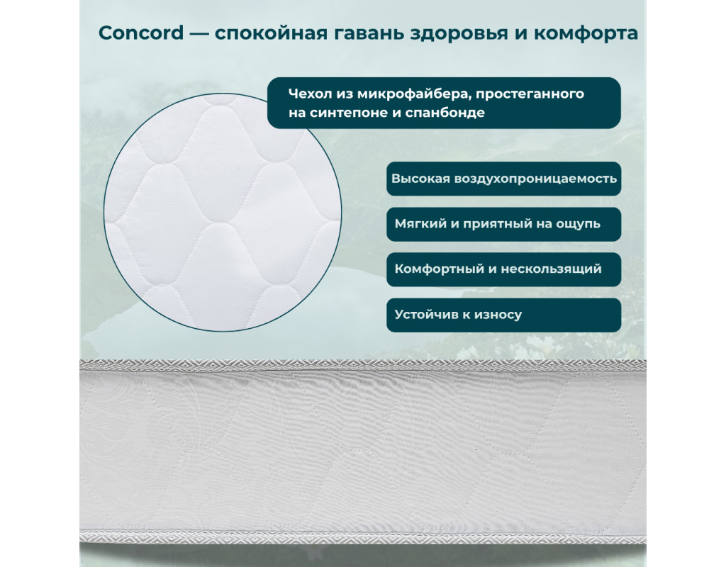 Concord очаровывает своими полезными качествами, вдохновленными чистотой полей и красотой природных ландшафтов. Выбирайте Concord и получите билет в райские уголки сна и здоровья.