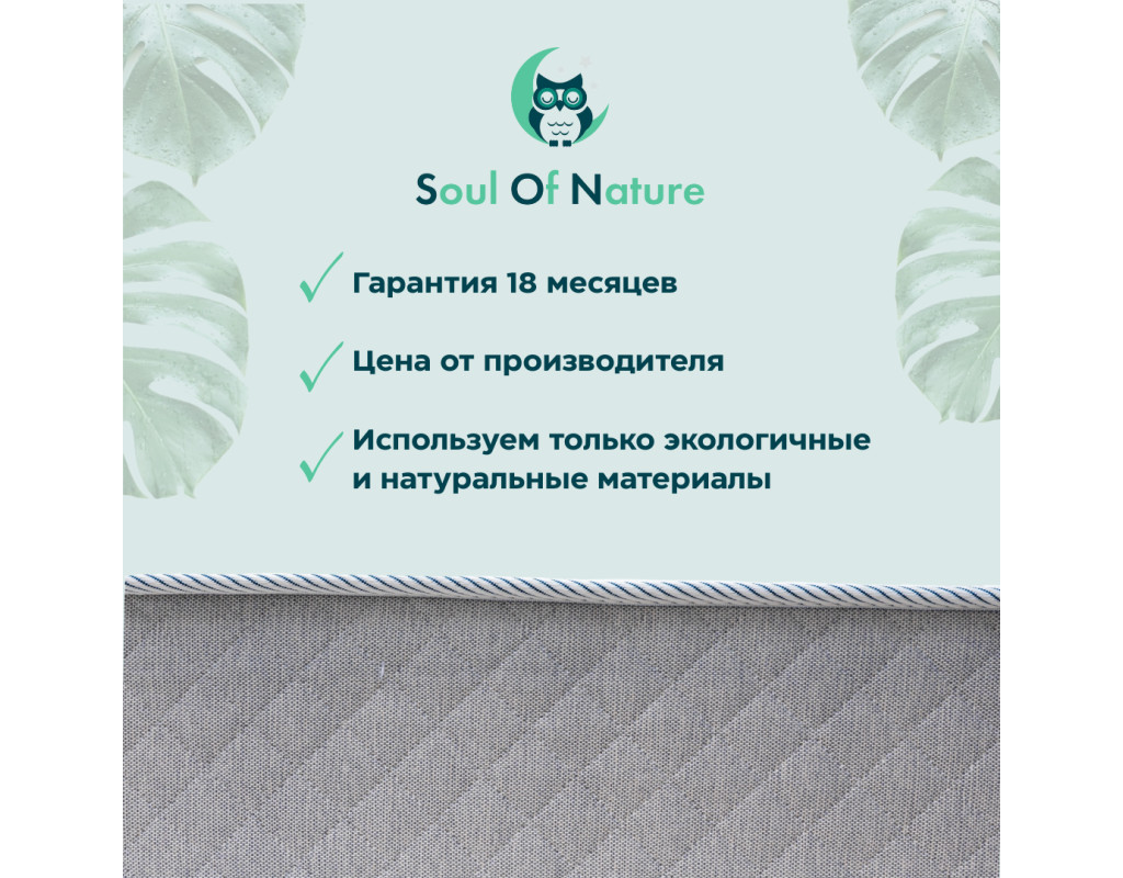 Слои премиальной эластичной пены с поразительной точностью адаптируются к каждой линии тела, проявляя такую же стойкость и приспособляемость, как сама природа. Тем временем термовойлок надёжно оберегает наполнение матраса, продлевая его срок службы и радуя Вас качественным отдыхом годами.